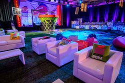 A large portion of our graphic design is manifested in the application to scenery. We develop and create the graphics for wall and floor treatments, applied vinyl decals, custom printed carpets, and a myriad of other scenically printed applications.