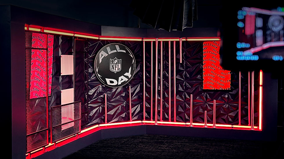 First up we have a social media broadcast set for NFL ALL DAY that was built for the 2022 NFL Pro Bowl. We were in the middle of doing the throne photo op for NFL ALL DAY at the NFL Honors/Super Bowl Weekend when they reached out to us for this quick project. (Check out my last post for information on that throne set.) And the term "quick project" meant exactly that. In fact, with Pro Bowl Weekend the week before the Super Bowl, we actually had to design/build/activate this project prior to the event we were already creating. As I've said before, though, I love these condensed projects. While it's stressful to be pushed with these timelines I often find that extremely creative results can occur because of that very schedule.